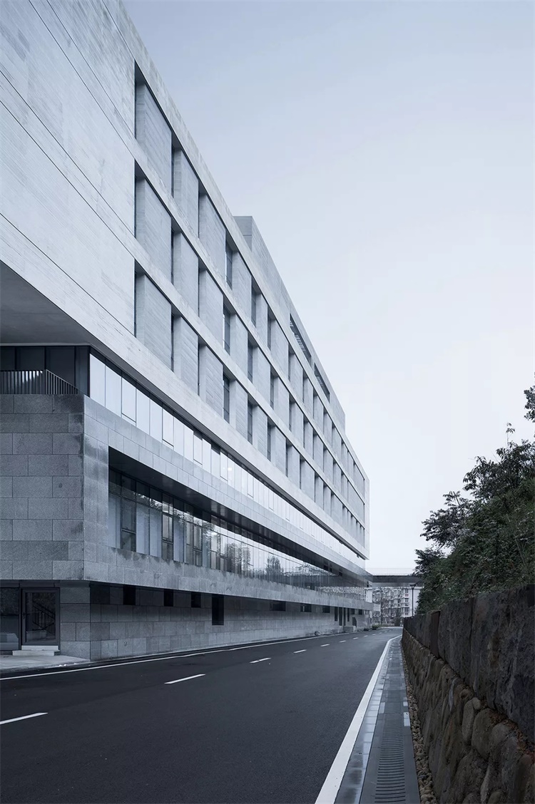 极简洁的建筑形体线条融合着虚与实,光与影的变换,设计既成功地解决了包括城市档案馆、人防指挥中心、办公等诸多功能空间,又和谐地呼应着周围的山势,体现了人与自然和谐共处的建筑设计思想。