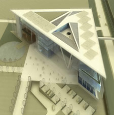 除以上被动式节能之外,我们还适当应用了一些主动式的环保技术,如三角形屋顶结合太阳能集热板;利用主导风向的风力涡轮发电机;高效节能的外窗与通风系统;节约一体化的管线夹层楼板体系等。