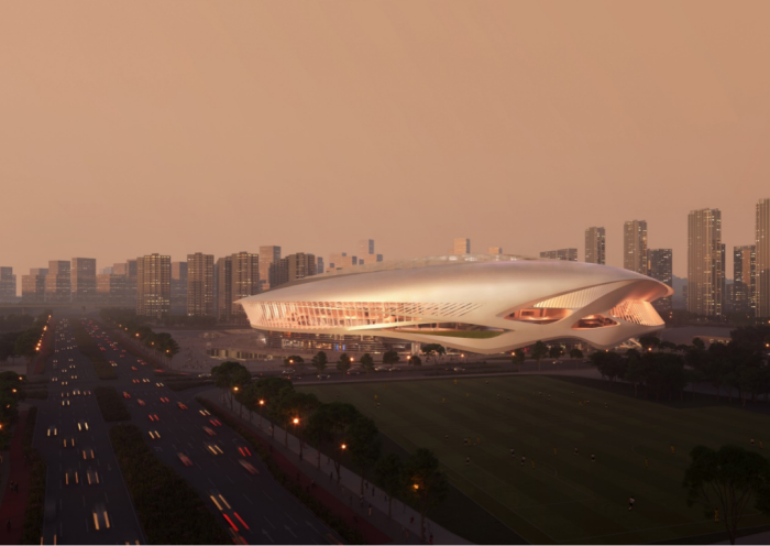 作为可以承办洲际赛事的国内最大的专业足球场之一,展现了建筑的标志性与广州的地域性。建筑曲线流畅交错,展现了赛场的速度与力量,传达出广东在百舸争流新格局下赛龙夺锦的拼搏精神。