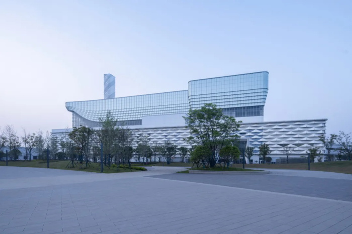 厂房上部的建筑表皮采用柔美动感的形式,犹如一张正在揭开的“帷幕”,将厂房内部的机器作为“艺术品”,透过清澈的玻璃幕墙展示给到访的公众。
