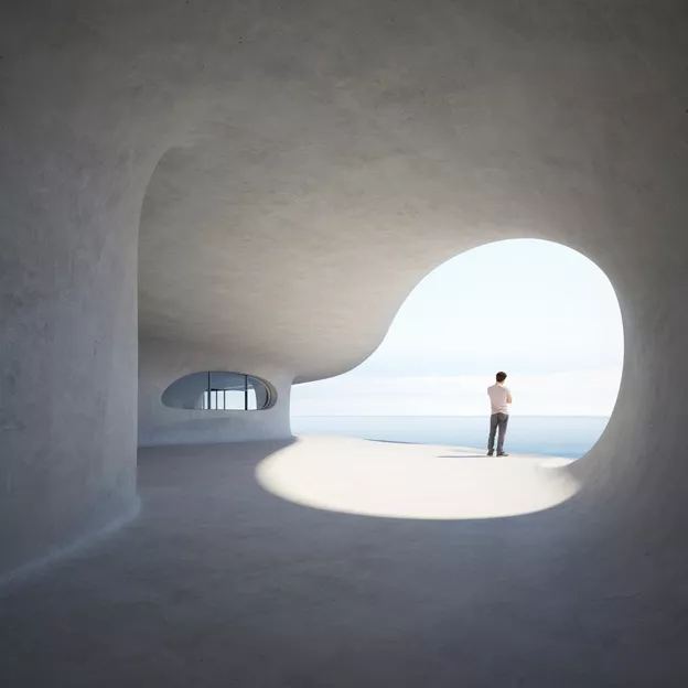 人在其中,望海、观天。人不再是主体,建筑也不再是载体。一切仿佛只是宇宙一粟间的微影,但又无穷无限。