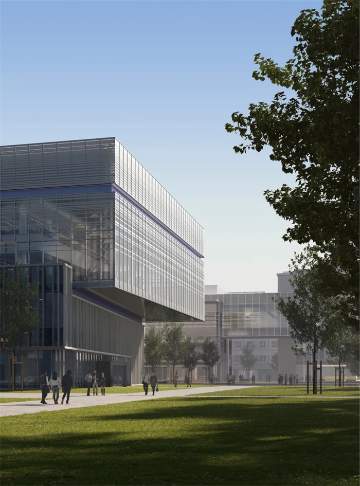 昆山杜克大学校园设计旨在促进学生健康活动以及实现全面健康;同时,作为一所负责任的国际一流大学,昆山杜克大学二期校园的设计体现了学校实现碳减排和推进碳中和的决心和担当精神。通过使用多能互补综合能源系统以及可循环材料和模块化建筑构件,大幅减少了项目建设和运营时产生的碳足迹;校园绿化率高达32%,其中90%绿地通过微喷节水灌溉系统使用经处理后的雨水灌溉;所有玻璃幕墙采用针对防鸟撞设计的符号化彩釉图案,对鸟类起到警示作用。