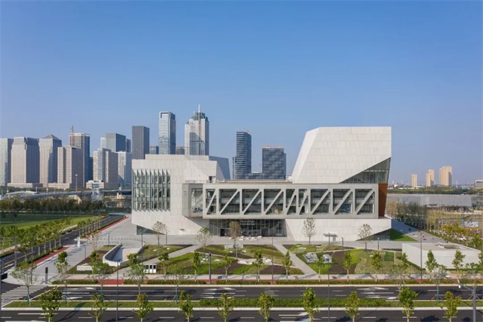 这是中国首个颁发美国认证的音乐硕士学位的艺术机构,位于天津于家堡经济技术开发区,占地总面积达到了45000平方米。学院建筑由负责茱莉亚音乐学院纽约校区2009年扩建设计项目的DS+R建筑事务所操刀设计。