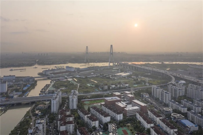 徐汇中学华发路南校区位于徐汇区华泾镇华发路近龙吴路。校区由于选址的局限,被一条进出居民区的道路一分为二,但设计上通过巧妙布局,既让东、西两个区块的功能相对集中、保持独立,又采用二层过街天桥将整个校区连为一个整体。同时,在社区道路上设置的操场区的入口,可以实现学校部分设施与社区间的共享。