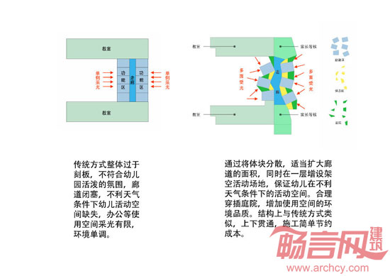 简介:经朋友介绍参与大石窝镇中心幼儿园项目方案设计。我们塑造符合幼儿心理特点的丰富空间,同时在功能上,保证使用空间的完整与流动。通过将体块分散,适当扩大廊道的面积,同时在一层增设架空活动场地,保证幼儿在不利天气条件下的活动空间。合理穿插庭院,增加使用空间的环境品质。结构上与传统方式类似,上下贯通,施工简单节约成本。
