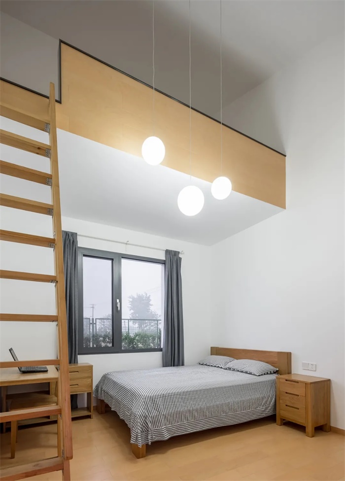 新宅结合建筑的坡顶空间设置为复式房间,将老宅的木地板用作了阁楼的地板。当年爬上阁楼 “打地铺”的场景犹在昨日,时空交错之间,所有的爱与关怀永不改变。