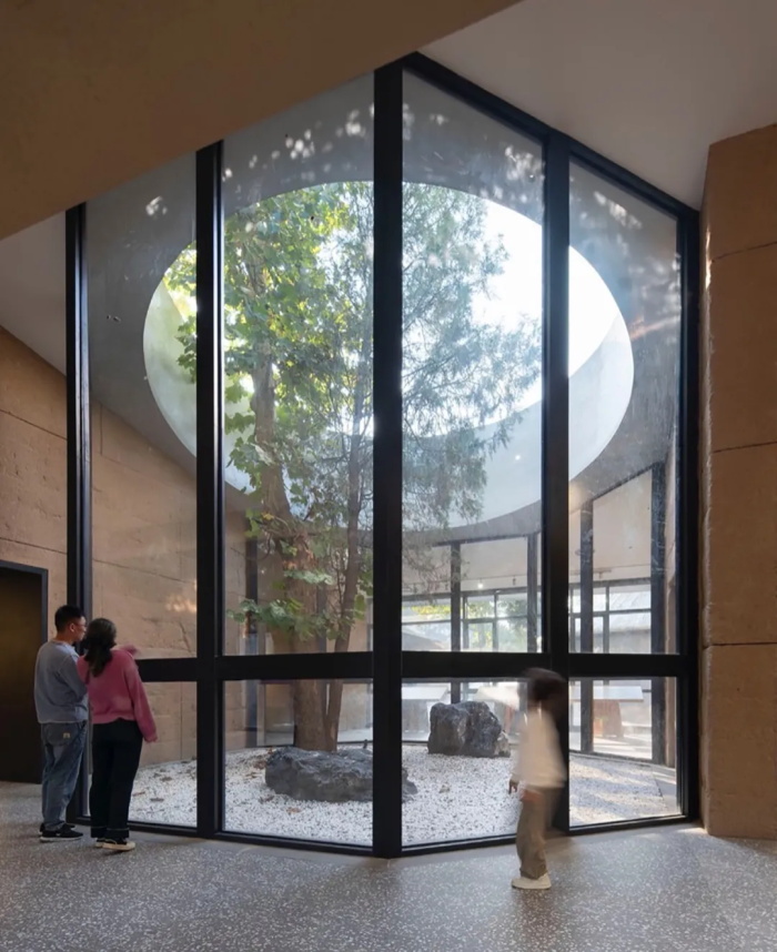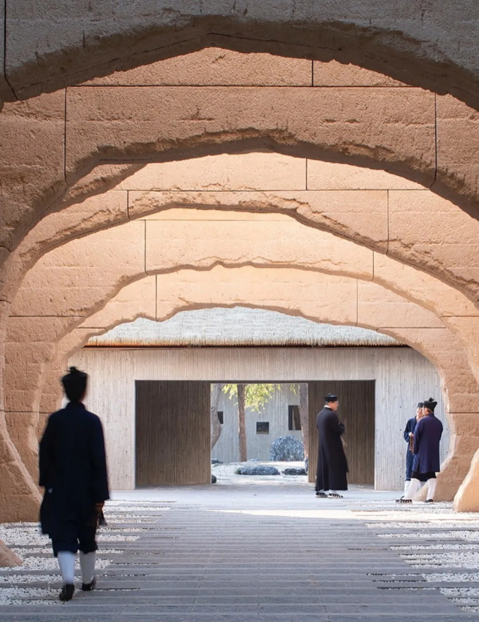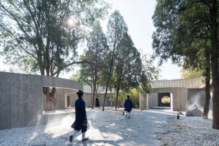“吕公祠再生”的设计策略是在现有房屋无序的肌理上,以中央环廊为媒介重构景区的开场。环廊保留了12棵原生树,完全契合了道教文化中数字12丰富的象征意义。例如 “十二重楼” 在吕洞宾所创立的内丹学中是指人体咽喉部位的十二节软骨,连接下丹田与中上丹田,象征气机上升的通道。这一内气运行的关键路径,也隐喻着环廊对引流的关键作用。