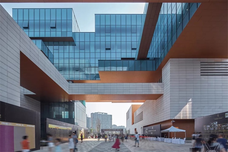 作为综合性文化体育建筑群,苏州高新区文体中心主要功能分为三大板块:文化空间、体育空间和商业空间,涵盖区文化馆、图书馆、体育馆、全民健身中心、影视中心以及室外休闲广场等配套设施。