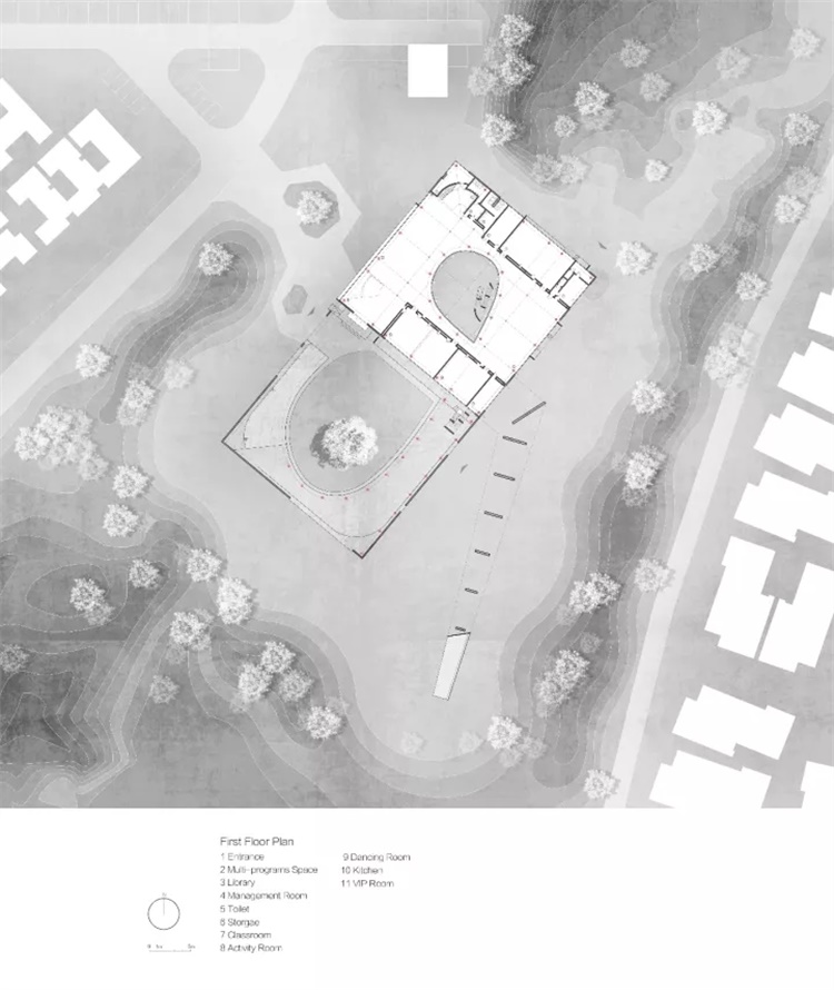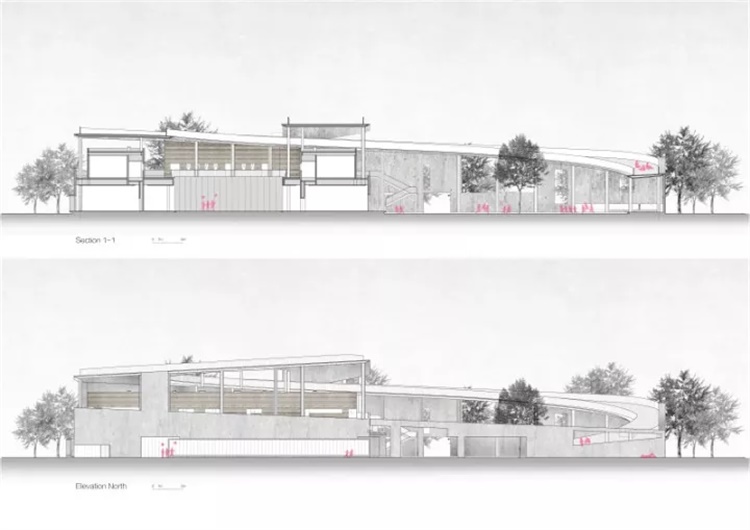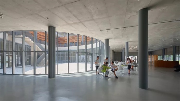 其中靠外侧的庭院被设计得更为开放,用来组织集体活动;而靠内部的一个则被一层的教室与二层的宿舍包围,更多用于安静而内向的活动。
