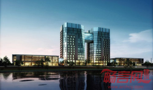 同时,本案的设计中,尽可能避免使用玻璃幕墙,大多建筑的表皮以玻璃和石材相结合的表现手法共同构建,这样,既统一了整个色调、材质肌理,同时也符合了绿色环保的主题。所以,基本不用玻璃幕墙也是指导本案的建筑形态设计的原则之一。