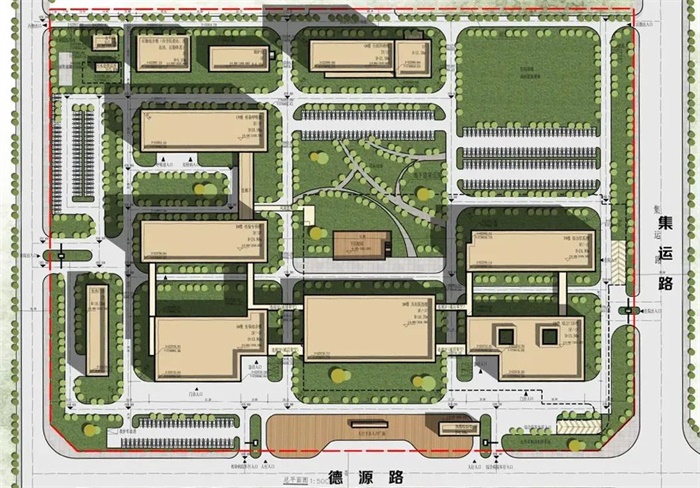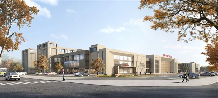 榆林是1986年国务院批复的第二批国家历史文化名城,拥有着悠久的历史和灿烂的文化。方案采用中轴对称的形制,立面体块上主次分明,整体庄重大气,方案选择土黄色真石漆为基底,粗糙的肌理更能体现出医院古朴素雅的气质。