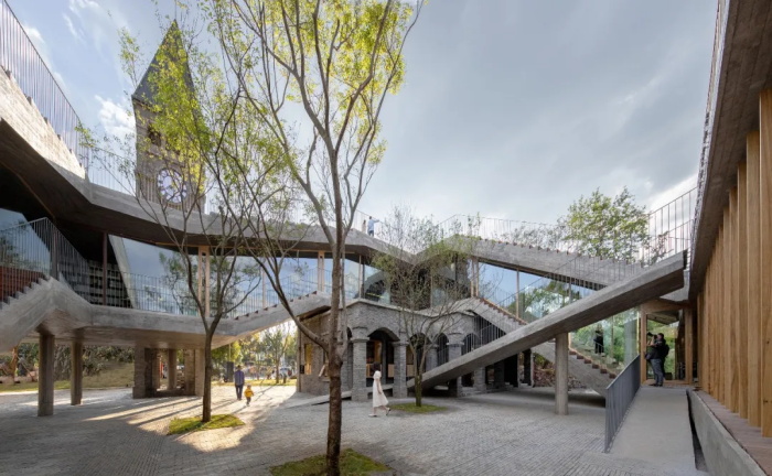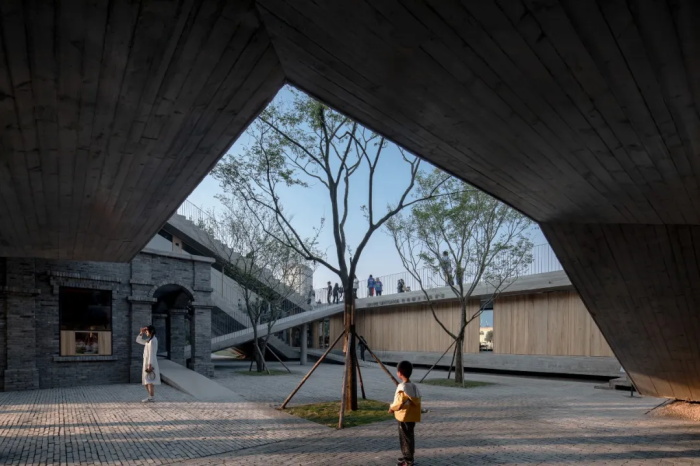 简单抽象的形体不仅创造出流畅丰富的内部体验,还将城市生活引入内部庭院,邀请市民登上折叠起伏的观景屋面。