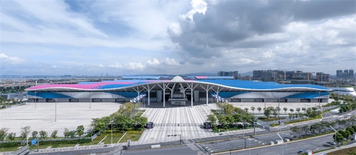 象征着热情的深圳市花簕杜鹃与“海岸卫士”红树林被巧妙地融入设计中,成为独具特色的建筑语言:簕杜鹃原产巴西,暗合了深圳的开放与包容;而勾勒展厅屋面造型,描绘展馆立面细节的红树枝干,同样撑起了深圳的城市精神。