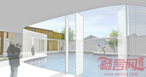 我们的设计是一座3.6米高的全新建筑,它经由弯曲的廊道环绕出一组院落,像珠宝盒一般把8栋古宅小心翼翼地收藏于内。每个院子都尝试和古宅建立一种独特的空间关系——这些古宅的落脚处虽然是一个江南古镇,但他们毕竟远离了原先的地理环境,更像是“飞碟”或者“飞来石”,因此,这种与新建筑之间“各自完整”的差异式对话,将会为古宅的新归宿提供全新的视角和氛围。