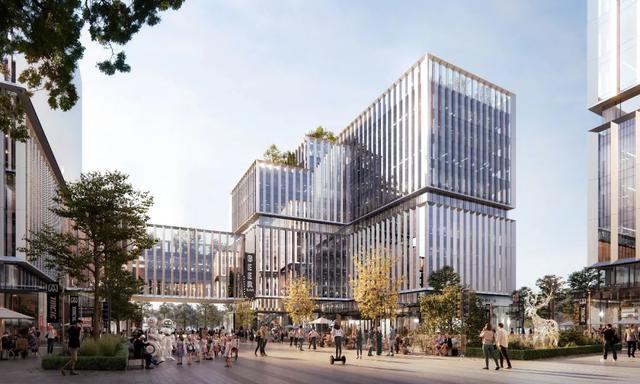 通过对科创企业的调研和对未来工作方式的研究,我们在园区设置更适合未来工作生活的创新场景。比如在中建总部内部植入60米挑空中庭,为各个楼层的人创造出让创新可见的空间氛围。同时形成晶莹剔透的建筑效果,将城市、湖光与建筑自然融合。