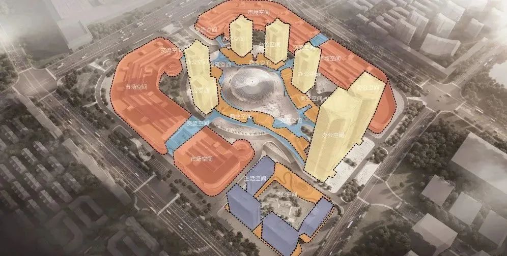 设计提出六大升级——功能升级,体验升级,形象升级,交通升级,智慧升级,绿色升级。最终在一个步行可达的空间内,为企业和商务人群提供商务、工作、生活的服务闭环,打造市场、商业、交流和生活有机融合的未来市场建筑范本。