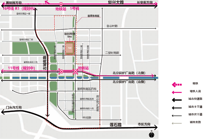 项目位于首钢园区景观绿化轴线及主要商业金融集中用地区域东南交汇处,基地平整方正,西侧可眺望商务区中心公园,南侧紧邻地铁11号线,北侧5分钟步行可至地铁1号线,交通及景观优势明显。“对于这个项目,我们不能只单单思考地块内的建筑要如何打造,它是属于整个园区总体规划中的一部分,地块西侧、南侧均是金融用地,我们的设计要在融入周边肌理的同时形成特色。”温子先博士如是说。