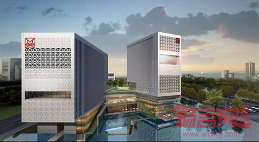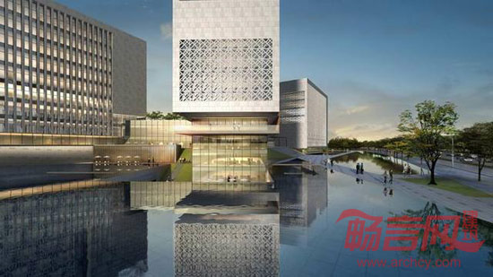 项目作为国际商贸区的门户,必然要求具有标志性的建筑形象,考虑到项目本身的高度限制和商贸区内设计建筑至高点的关系,以及商贸区内较多大体量单体建筑的规划,因此考虑本项目不适宜在体量和高度上加强以获得标志性的形象,而需要另辟蹊径,通过整体环境的营造来实现这一目的。