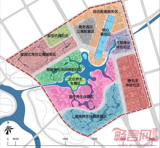 项目在基于哈尔滨多元文化的底蕴基础上,强化“健康养生、现代旅游休闲以及有机生态”三种文化。总体规划布局采用“岛状”形态,规划结构采用“一轴:养生休闲文化轴,两翼:休闲商业翼、滨水娱乐翼,四区:慢生活体验区、高端养生休闲度假区、家庭式常住公寓服务区、新型农民社区,多岛屿”的形式。利用不同形态的岛状布局,形成一个富有生命力的旅游度假社区。