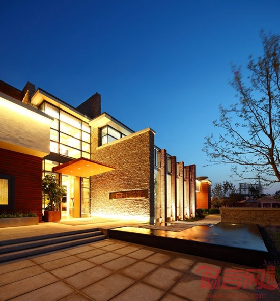 遵循有机建筑的设计理念,借鉴赖特草原风格建筑手法,空间上通过建筑体块的错动和连接,创造出流动、开放的空间效果;采用自然建筑材料,强化了建筑的天然气息和对人的亲和力,为客户提供一种“久在樊笼里,复得返自然”的体验感受。