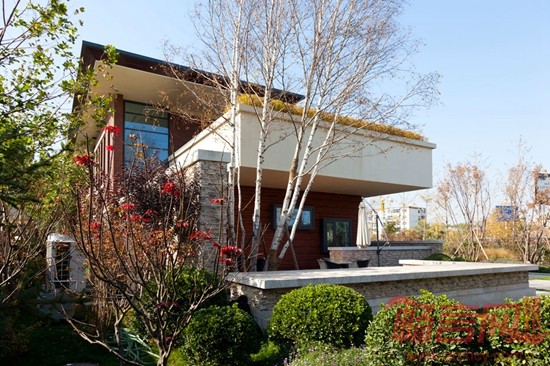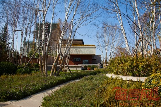 售楼中心建筑设计意向源于建筑大师赖特崇尚自然的有机建筑观念,将建筑作为环境的基本组成要素进行设计。售楼中心在体现“北美风情”的同时,也显现出一种隐約的“师法自然”的東方印象,线条简练,流暢明快。