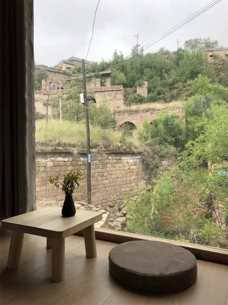 小学层叠的外廊空间,在空间的游走或坐倚靠立中,调节内部与周边山水聚落的视野层次,框山纳河,俗屏佳收。人们亦可在客房落地窗前坐望后山的窑洞聚落,享受风景和慢时光。