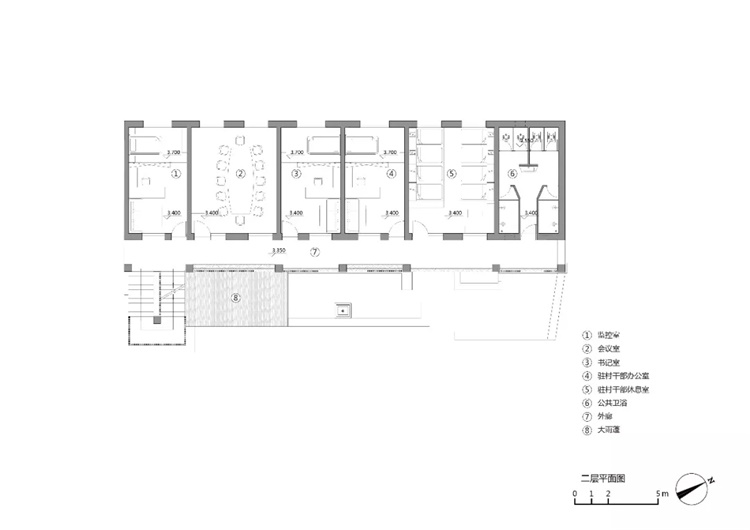 由于经费有限,二层保留原村委办公空间,未做过多室内改造,改造主要集中在公共外廊与三层接待中心。