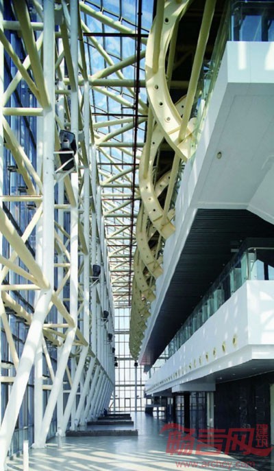 由于建筑轮廓的极简,映衬出建筑师对材料和质感的敏锐把握。建筑立面和开窗处理极为慎重:大厦在南侧临街而立,不做裙房,石材贴面和玻璃幕墙相间处理,营造出从云霄直落地面的庄重气势;而北面的大面积通透幕墙,不仅将莲花山尽收眼底,也与底部裙房形成虚实的对比关系。主楼与裙房,两个简洁的方盒子通过采光的中庭加以联系,在西侧道路上形成较好的城市界面。不仅如此,在含蓄而平易的表皮之下,也暗藏着一些独到的空间,例如屋顶设有大小跨度的两个钢结构,其中大跨钢结构作为主塔楼的屋盖,下设圆筒型的屋顶会所。深圳地铁大厦带给人们一次重温经典现代主义的机会。