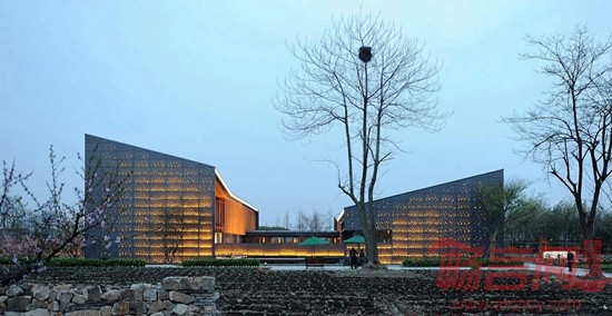 农村生活馆的设计目标通过充分探索景观现场,寻找新的建设和环境之间的平衡;充分尊重原始的自然和文化资源,创造属于特定的地点和时间的建筑,为新生的“乡村生活”的生活方式提供适当的空间形态。农村生活馆的空间构成想法来自于传统建筑空间原型–园林空间,东、西立面由实体墙进行封闭,从南到北为开放空间。东、西立面墙设计的特点采用了当地一个象征性的元素-桃花。