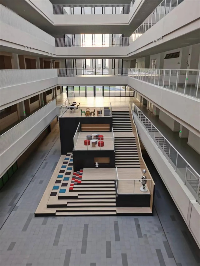 在同一个校园里,文体中心与教学楼间存在明显不同的功能差异和空间诉求,因此在总体规划初步完成后,在建筑设计上,与 OPEN 又一起确定了相互对比、又彼此依存的策略。