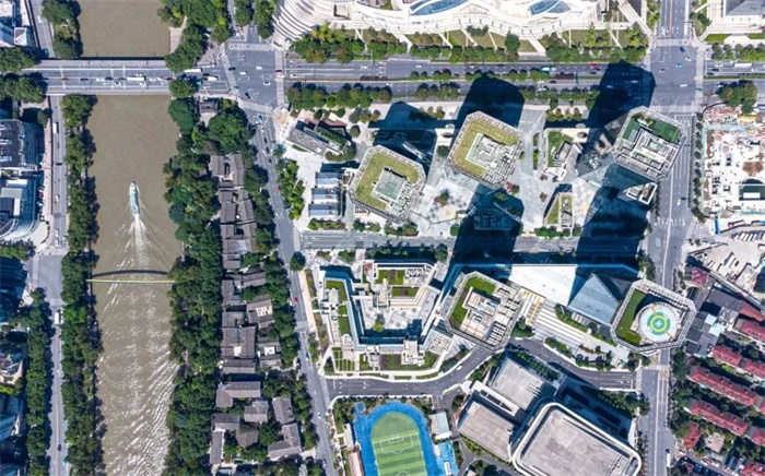 面向大关路的建筑群向运河和城市展示着傲岸身姿,错落的布置确保了各个面的最佳视野。运河眺望,看到的不只是古老运河。运河岸的公园、绿地、桥、塔、寺,赋予了人们对自然风光和历史文化的双重感受。