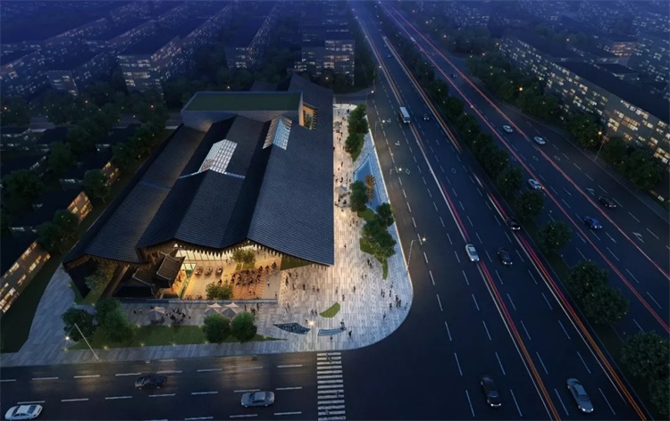 在传统 建筑的形体上增加现代城市元素,并通过结构向外部延伸,增加外围城市空间领域,将紧张的用地更多地留给城市,提高文化聚集度,形成区域人群茶余饭后可“遮风避雨”与“文化休闲”的城市场所。