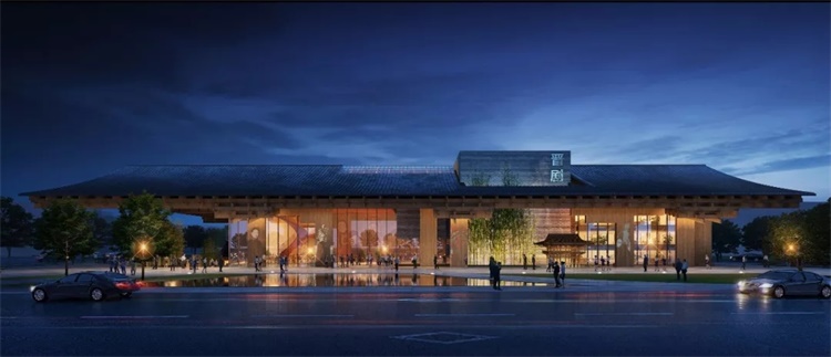 (1)外立面设计中,坡屋顶的设计和整体比例体现传统建筑文化内核——晋剧演出功能,并且通过现代材料的使用,以及与结构体系的合理结合,通过结构体现立面,使建筑造型更具合理性。