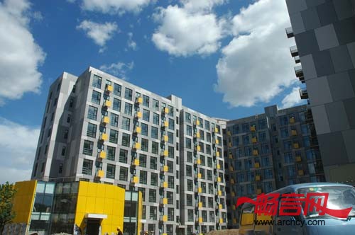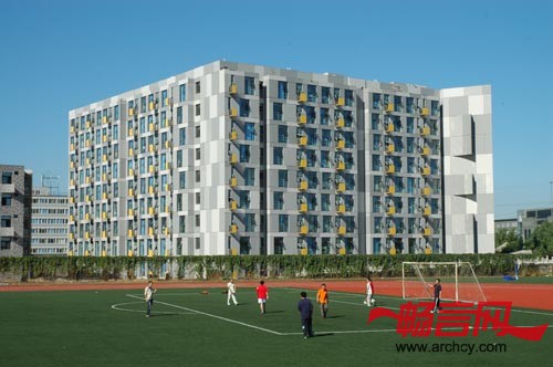高标宿舍则在外墙面饰黄色色块与之呼应