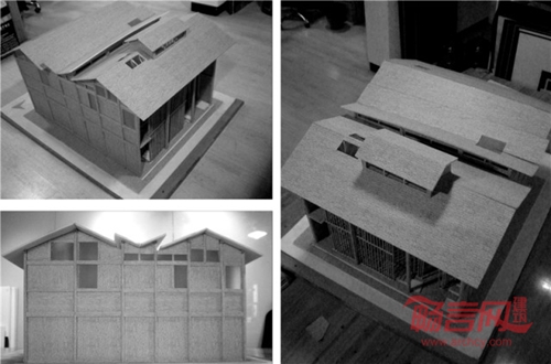 4)屋顶特质:作为建筑中部的飞顶,V型屋顶的起翘处形成了采光的高侧窗,低凹处则是镀锌铁皮的排水沟。因为遵循着周边老房子类似的坡度、色彩、材料与建造方式,它与环境的关系是和气的,但是屋脊塌陷、屋檐高扬而与传统建筑屋顶几乎相反的空间结逻辑则揭示了建筑师一定要对历史发言的专业立场——即使从外观上,修建于当代的建筑也不该与老房子完全混淆,与历史的差异源于对历史的尊重。