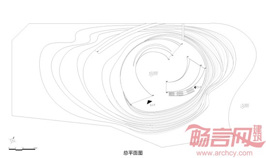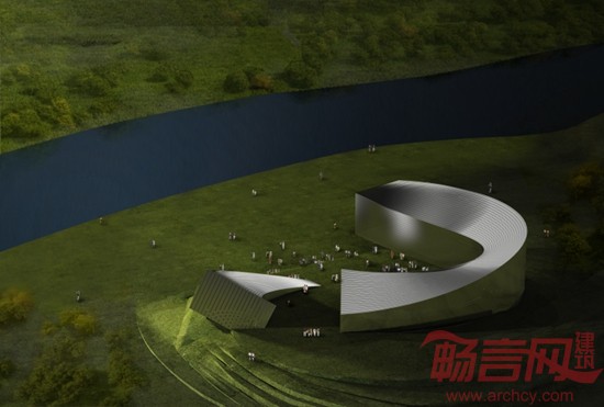 安代舞于明末清初发祥于科尔沁草原,最初是一种用来治病的萨满教舞蹈,含有祈求神灵庇护、祛魔消灾的意思,被称为“蒙古族集体舞蹈的活化石”,是国家级非物质文化遗产。设计从安代舞动态多姿、轻盈飘逸等特征出发,由一主一次两个极具动感的形式组成博物馆,以突显博物馆主题和草原游牧文明“动”的文化气质。这一动态特质通过环绕建筑“让大地起舞”的动态景观设计得以强化,并通过将建筑的主体掩藏在地下,形成与公园自然环境相和谐的地景建筑。