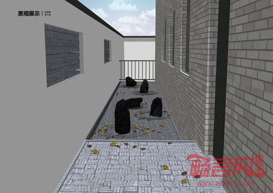 景观方面通过两个下沉庭院,把展览和居住两个功能流线巧妙的分开。