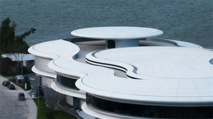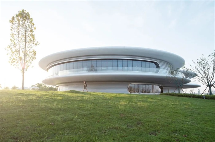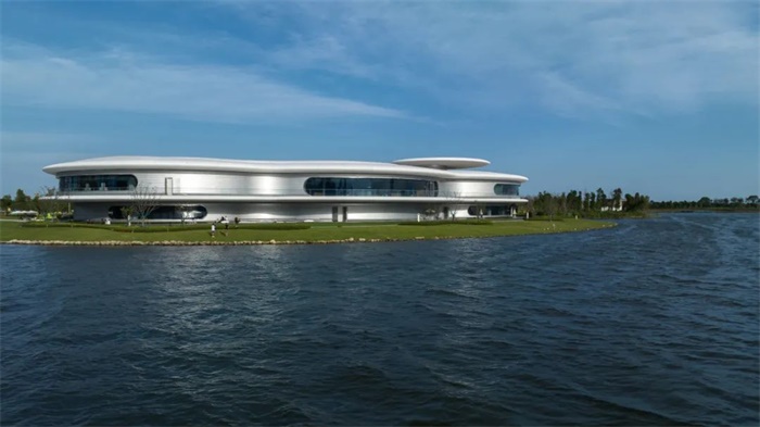 由上海建筑设计研究院有限公司(隶属于华建集团,简称上海院)原创设计的滴水云厅规划展示中心坐落于临港新片区滴水湖核心片区的北岛内,东临北岛环路,西临滴水湖,建筑面积约9000m²,将作为临港地区的未来规划展示以及市民游览活动的重要场所。