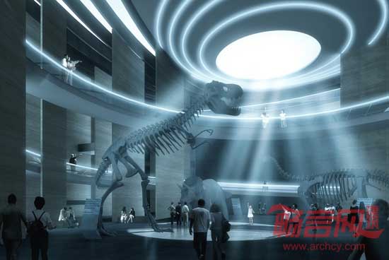 项目位于呼和浩特南二环畔,整个建筑的形体是由博物馆、实物资料档案馆和“资料研究中心”组成,并通过西侧“资料研究中心”的竖直轴线和东侧“绿地公园”的水平轴线螺旋上升,向中央的博物馆聚拢,消失于博物馆中央大厅顶部,使三者有机的融合在一起,形成关系明确的建筑形态,逐渐高起的“资料研究中心”则成为整个场地的视觉中心。
