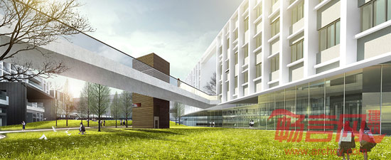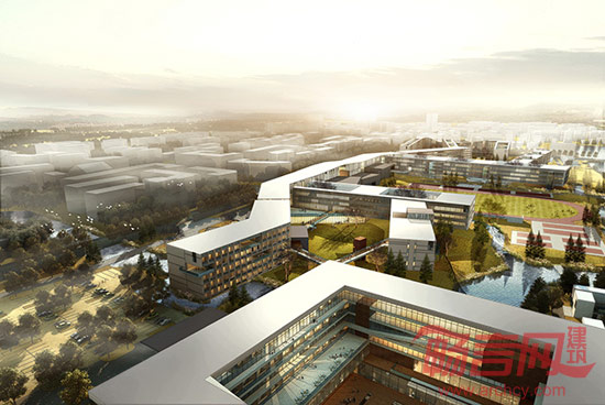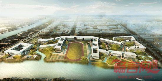 项目基地北侧为杭州湾直通东海,陆中湾江绕基地西侧而过,沿江的城市公园为学校提供了开阔的视野。