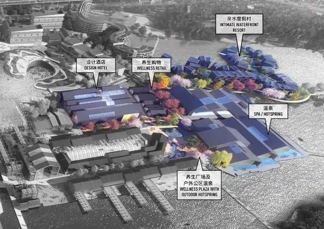 整个项目提供七种不同的旅游体验,串连中日市场、苏州水上市场、文创商业、餐饮岛、文化岛、温泉广场、养生街区及设计旗舰街区各主题景点。