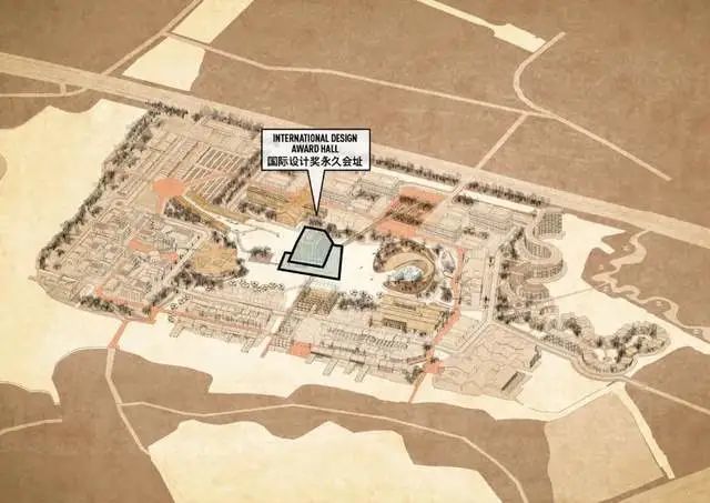 第七站“国际设计奖永久会址”位于中央湖面中心,也是本项目的重头戏。