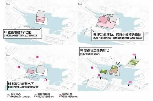 为了打造更合适的建筑尺度,国际设计奖永久会址的颁奖礼堂被布置在了水下。