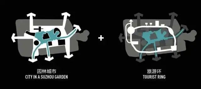规划中央的园林及湖景为项目带来真正具有苏州独特意象的标志性品牌, 为公众提供了可以社交、休闲、娱乐和运动的开放空间和场景;而园林外围的旅游环则吸引了周边的人流前往各个特色目的地, 相辅相成, 是未来青苔中日设计工业村的两大关键的成功要素。