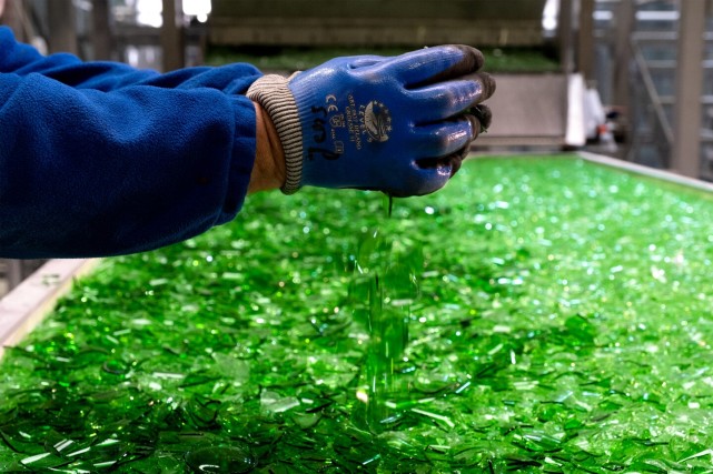 该公司从宝格丽在罗马的原始商店及装饰艺术设计中获得灵感,以试图创造出一个类似于玉石的外墙,而玉石是中国文化中非常重要的一种宝石。它采用了绿色、白色和透明的香槟酒瓶以及啤酒瓶和其他类型的酒瓶的混合物,这些酒瓶被熔化后压成板状,然后在德国的一家专业工厂被切割成想要的形状。之后,它们被运到上海并安装在建筑的外部。金色的黄铜装饰则是为了加强一块玉石珠宝的外观,另外,为了使其能在夜间发光,上面还安装了一个背光。