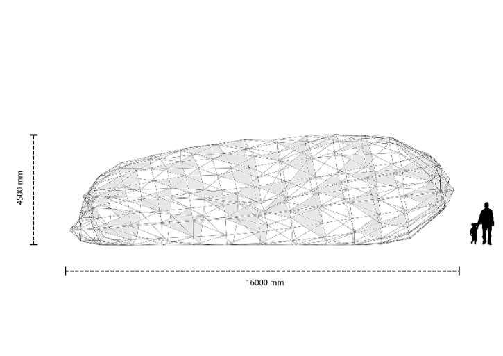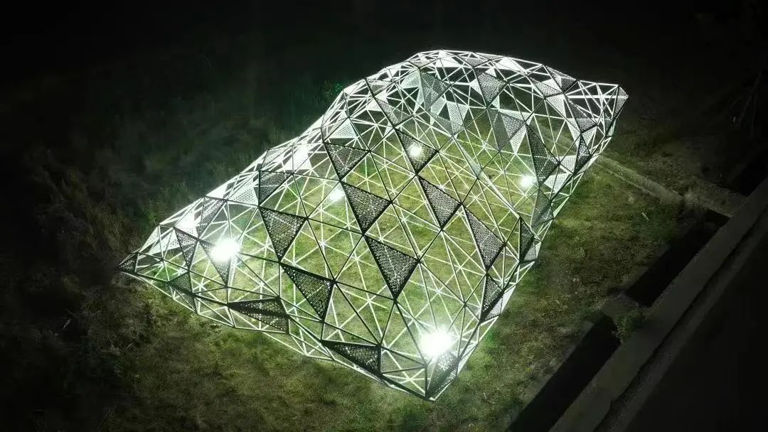 摄影©夏至 在细节处理上,“枕头”的蕾丝花纹通过参数化设计形成,令作品有织物般的温和质感,金属焊接制作工艺在光线之下有着丰富的阴影变化。当观者从作品外部走进内部时,变幻与韵律带来浪漫的艺术体验,感受到无限的可能性。