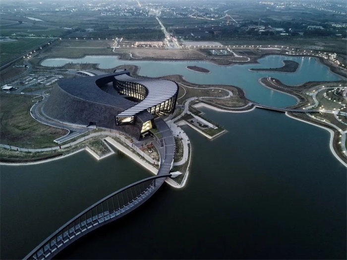 新北市艺术博物馆坐落于莺歌河与大汉溪交汇处。此地地势平缓,北面为龟仑山,南面则可眺望大汉溪与雪山山脉。设计灵感源自该地区丰富的历史与文化,设计团队在该项目中融入了砖砌建筑的古朴韵味以及摇曳生姿的芦苇等元素,打造出了一个现代且富有前瞻性的建筑形态。