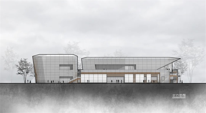 用横明竖隐玻璃幕墙轻轻包裹的一层,模糊的室内外界面,使其尽可能地给予周边环境更多的光感,保证通透的视野。并在入口、转角处采用了不同的几何形状和尺度创建引人入胜的建筑。