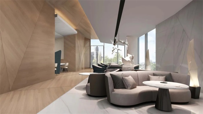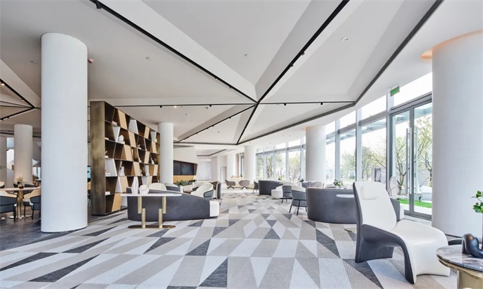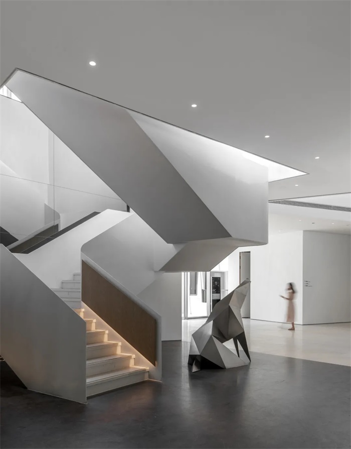 几何转折的玻璃面、不规则的折线旋梯,与建筑整体风格相呼应的同时,带来艺术感和科技感完美结合的室内空间。