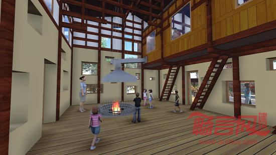 通过前期的调研,为了传承彝族的建造文化,儿童希望之家的建筑采用传统的建造方式——夯土墙,木瓦板顶和木结构屋架。出于节能的考虑,建筑采用集中式布局,并且在每间房屋内部设置火塘(既满足室内取暖的需求,又契合彝族文化的需求),生火产生的烟气由烟罩收集起来,穿越阁楼房间(用于阁楼房间的取暖),再排到室外。木结构屋架由凉山彝族传统木构方式转化而来,并做了一定经济性的简化。